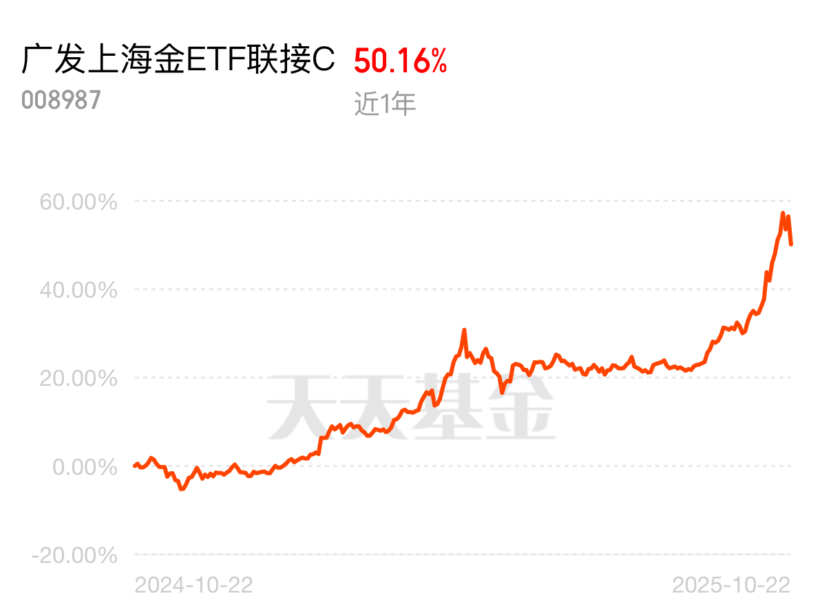 老美每次TACO还有人信暴跌涨不回来就离谱,黄金是长期涨幅逻辑,$广发上海金ETF联接C$ 看业绩1年能涨超50%,加仓先
