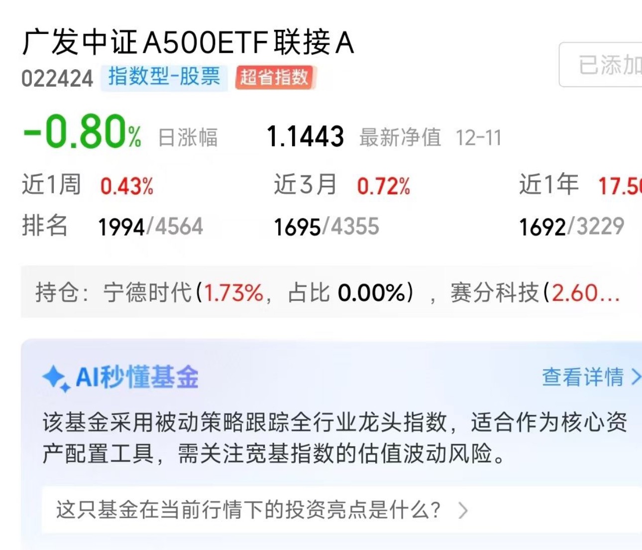 刷首页看到个“超省指数”专区,点进去发现广发中证A500ETF联接A不收申购费了?我没看错吧……之前好像都是C类才免申赎费,这次A类也免了?那长期拿着是不是更划算了?$广发中证A500ETF联接A$