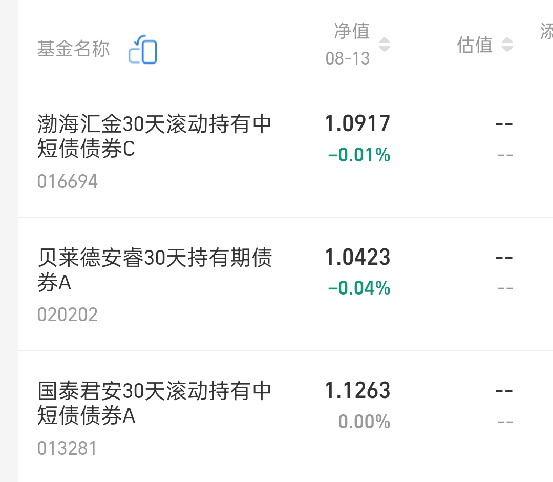 $渤海汇金30天滚动持有中短债发起C$ 丢了1个蛋