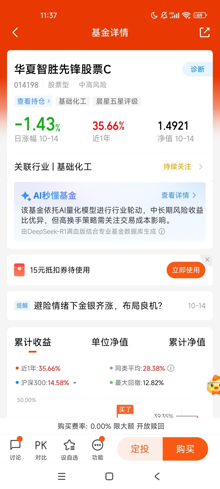 #分享国庆见闻,晒收益,瓜分好礼!# $华夏智胜先锋股票C$ 个人观察到假日经济涉及到消费板块中的很多方面,比如交通出行和餐饮消费基本是必不可少的,难得假期,大家都想出游去去班味。当然电影和游戏也是另一种思路的假期休闲娱乐方式,之前春节档电影哪咤2太火爆了,创造影史记录,具有里程碑式的意义!还有游戏《黑悟空》让全球玩家看到了中国的实力和传统文化,如今越来越好的国产3A大作蓄势待发中,中国科技的硬实力越来越强!站在当下,我们信心越来越强,底气越来越足,还有更多的潜力空间等着去挖掘,期待未来的每一天!$华夏智胜先锋股票C$ 表现稳健,体验舒适,适合长期持有,耐心等待下一波大行情的到来!@华夏基金