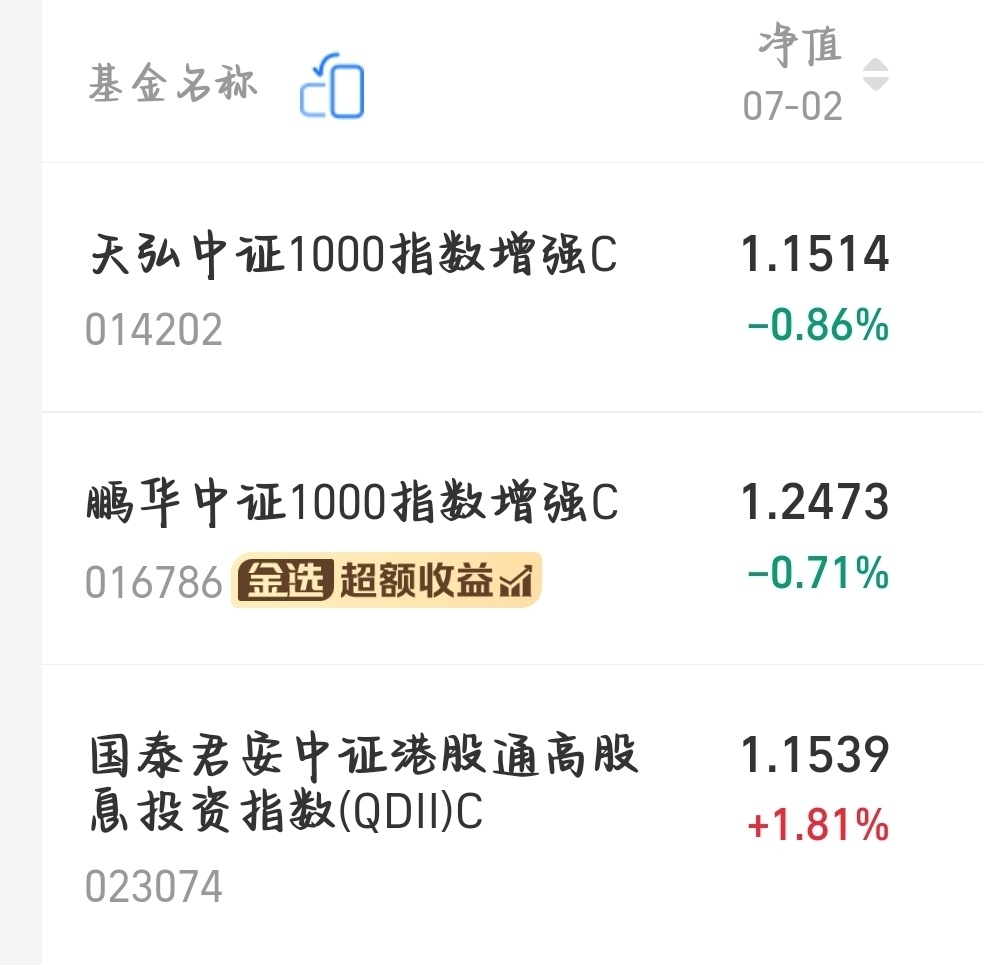 $天弘中证1000指数增强C$ 今天跌了0.86%