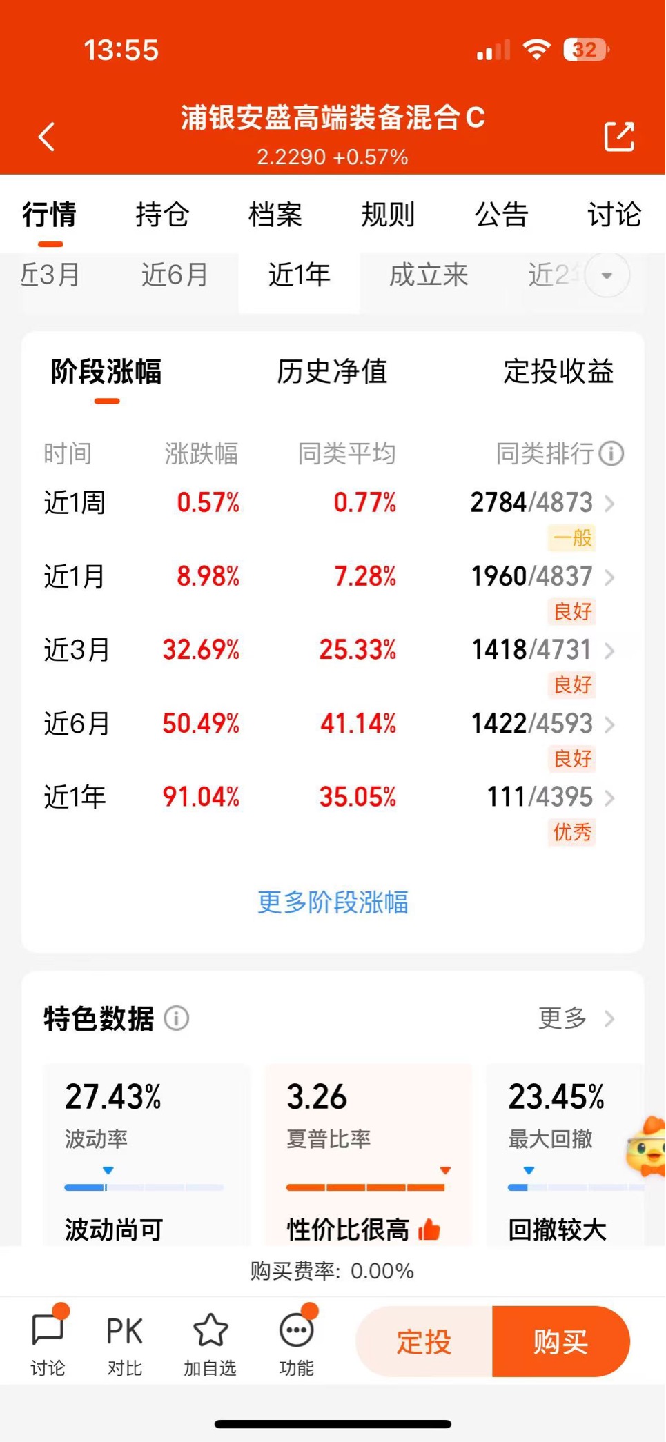 最近看上了回撤控制的比较好的罕见人形机器人主题基金,比有的机器人基金少跌近一半,历史最大回撤也接近机器人指数的一半,而且收益率还高,可以入手一波$浦银安盛高端装备混合C$