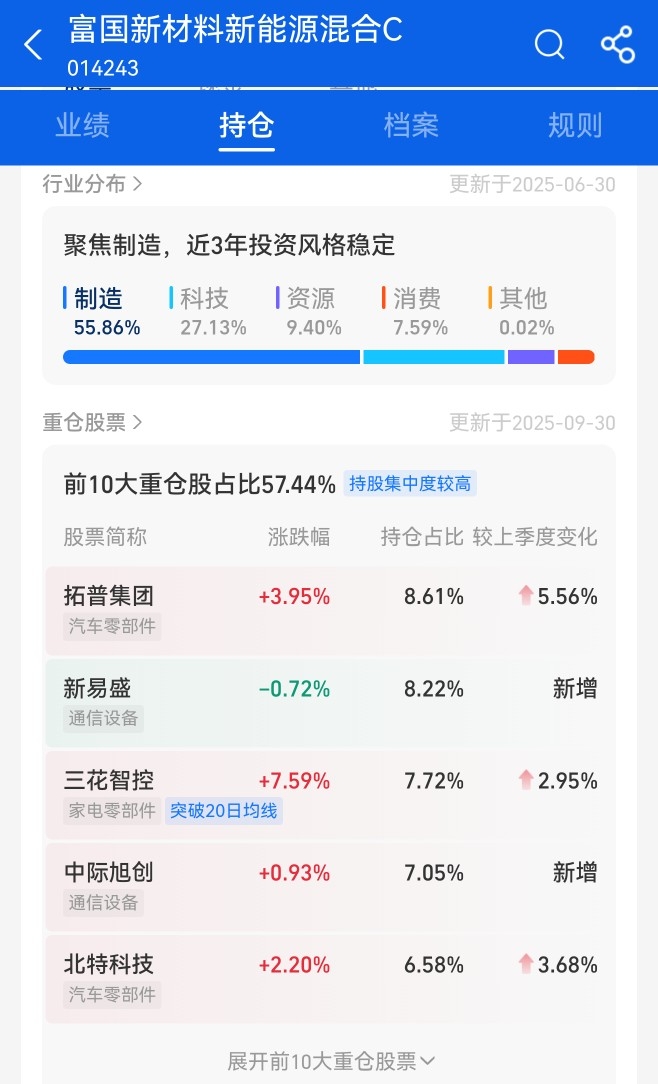 今天看到消息特朗普要发展机器人,前面是AI现在是机器人,这两者都是科技,看来科技还是长期主线!今天人形机器人板块逆势上涨,我发现这个宝藏基$富国新材料新能源混合C$ 今天在普遍回调的时候又涨2.03%了,看了持仓拓普集团、三花智控、北特科技都是最近的牛股,这是个聚焦机器人产业的主动基金,近一年有46.31%,在人形机器人同类主动基金中属于优秀的存在!