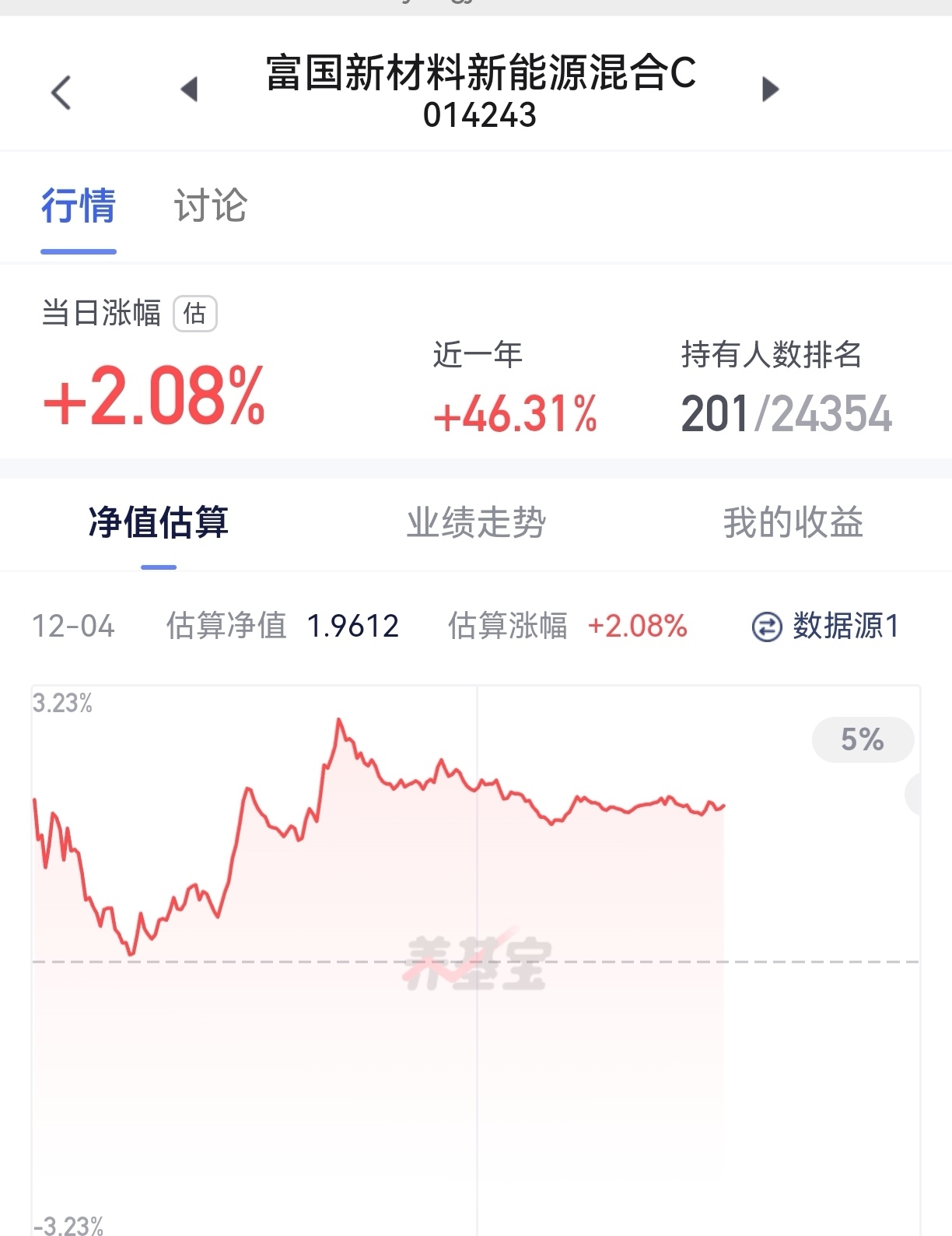 市场早盘探底回升,创业板指盘中涨超1%,此前一度跌超0.5%。沪深两市半日成交额1.03万亿,较上个交易日缩量350亿。盘面上热点快速轮动,全市场近3500只个股下跌,不过我持有的$富国新材料新能源混合C$ 表现还不错,净值估算预计涨2.08%,前十大持仓大部分都红了,业绩也是很喜人的,近6个月上涨超35.46%,同赛道平均才涨25.34%,足足高出了10个多点,非常牛了。