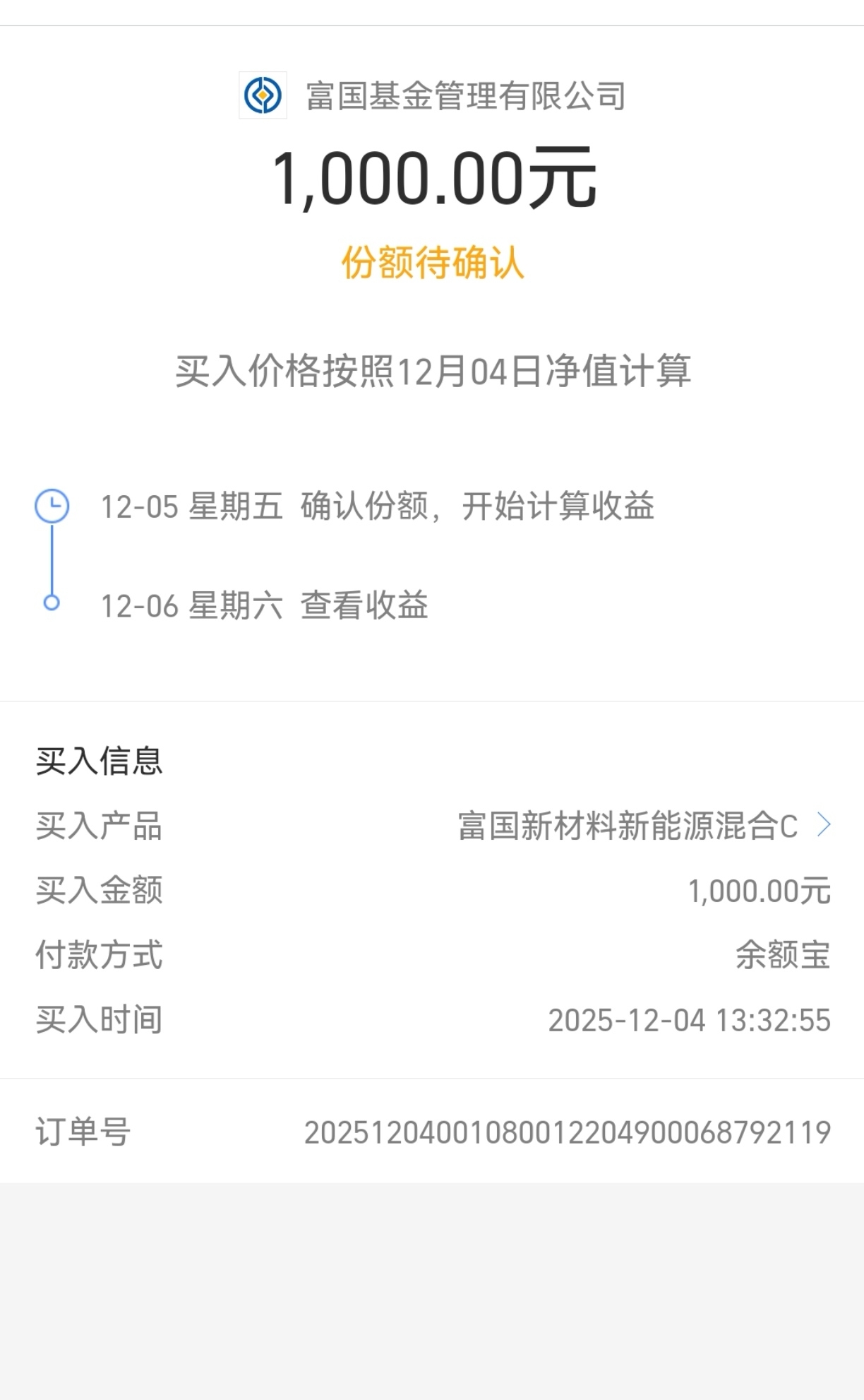而且现在政策也是力挺新能源、半导体、生物医药等下游行业的,这些都离不开上游原材料的支持和供应,所以需求肯定是持续扩大的。新材料富国新材料新能源混合C是高端制造和绿色经济的基石,国产替代加上技术升级的双重红利,长期获取投资回报的机会明确。加上固态电池、光伏技术这些突破,既降成本又拓应用场景,企业赚钱能力越来越强。而且行业规模连续多年两位数增长,资金也扎堆关注,长期上涨逻辑特别硬。富国新材料新能源表现给力,我今天继续加1000元。