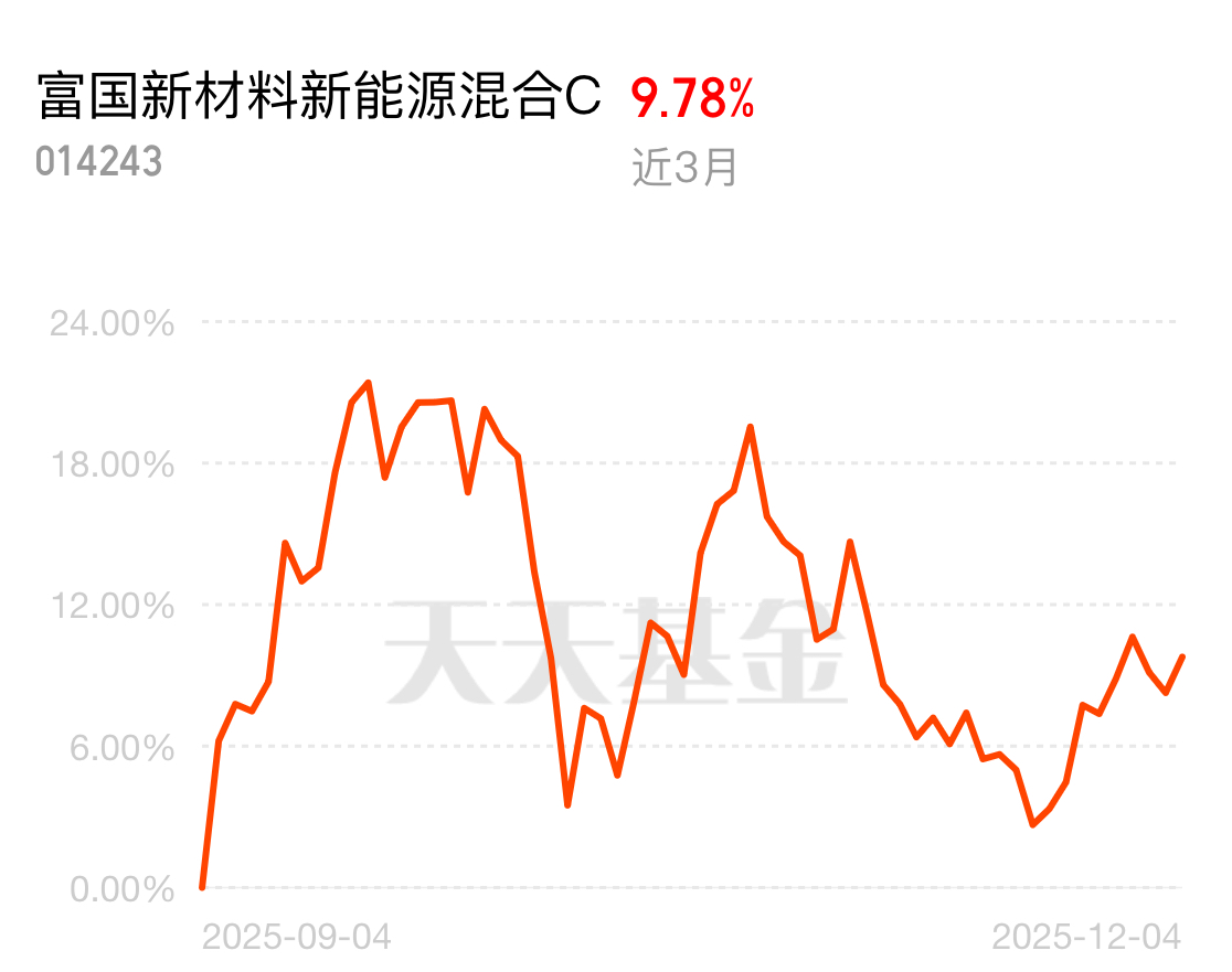 $富国新材料新能源混合C$ 在10月启动缺口支撑附近没有选择往下去补缺,但是也没有积极往上行,就在这儿磨洋工。好在我这次进场的位置不高,不然就难受了。的产业趋势是比较清晰的,起码当下来看一切都在往好的方向发展,两个逻辑:反内卷及储能爆发目前都没有发生变化。只是情绪交易市,没有量的支持加上年底观望氛围较浓,要促成一波持续性的反弹行情就需要耐着性子等了。