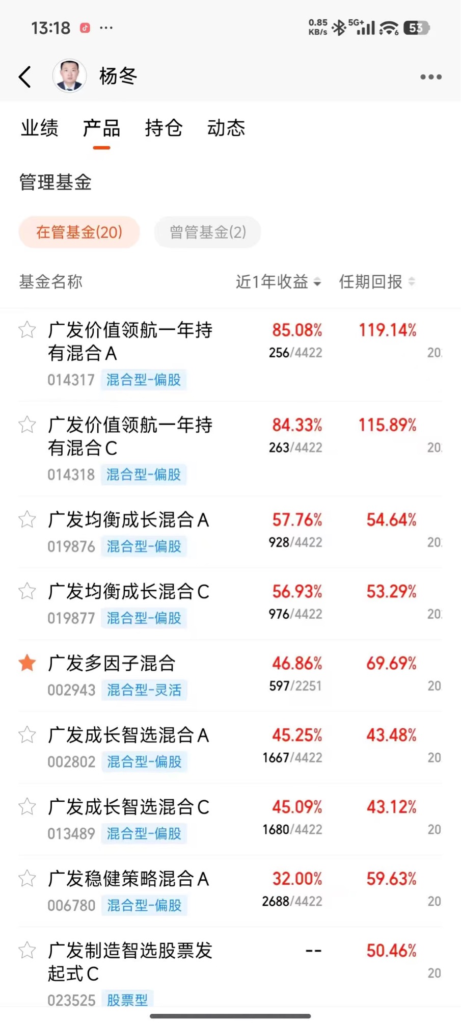 买指数还是跟这大盘走的,有时也想找点增强。明天杨冬经理的新基广发研究智选发售,看他年化回报16个点,这次聚焦AI和储能做主动布局。听说这个经理有水平,已加自选,看看明天情况$广发研究智选混合C$