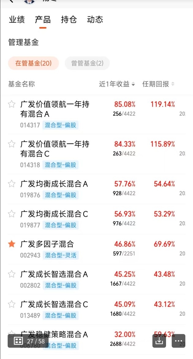 买指数还是跟这大盘走的,有时也想找点增强。明天杨冬经理的新基广发研究智选发售,看他年化回报16个点,这次聚焦AI和储能做主动布局。听说这个经理有水平,已加自选,看看明天情况$广发研究智选混合C$