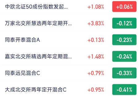 欢迎提出希望被播报的基金!!!按照收益率排名,如原来基金看不到了,说明收益低于最后一个!基金估值只是模拟,收益率仅供参考 $中信建投北交所精选两年定开混合C(OTCFUND|016304)$ $华夏北交所精选两年定开混合发起式(OTCFUND|014283)$ $广发北交所精选两年定开混合C(OTCFUND|014274)$ #CPO、PCB大反攻!行情空间有多大?#