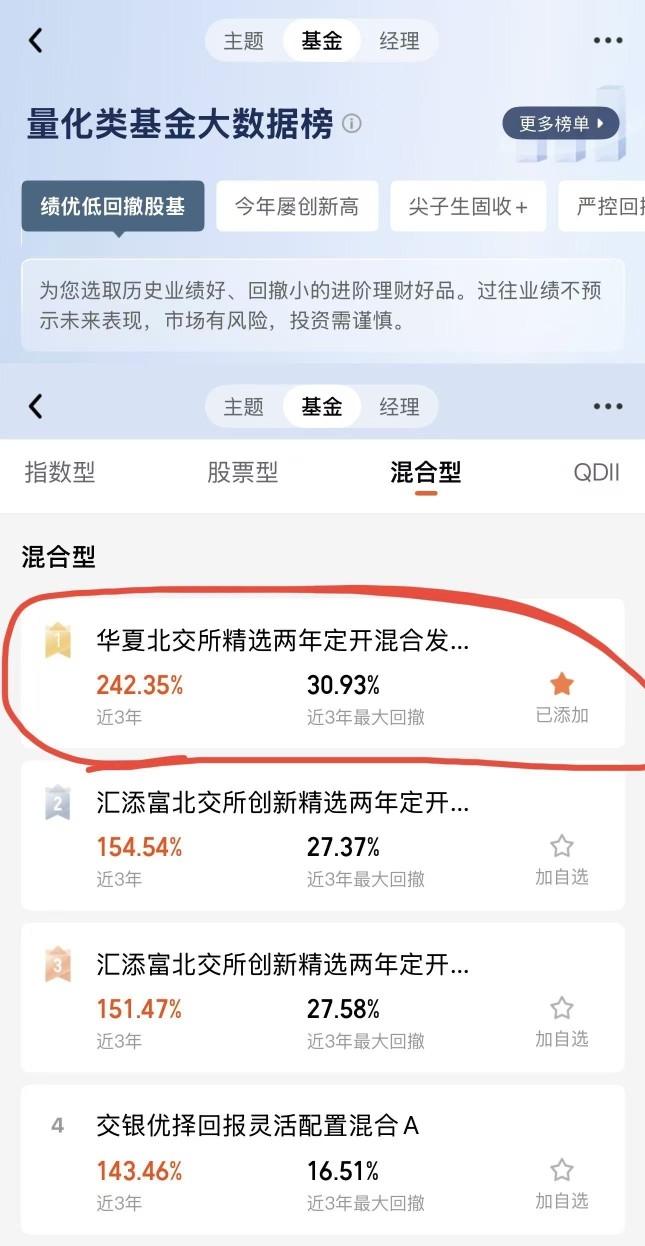 这基都入选历史绩优低回撤榜第一了!近3年242%收益,跑赢指数200%,开放期不犹豫,跟我一起冲啊$华夏北交所精选两年定开混合发起式$