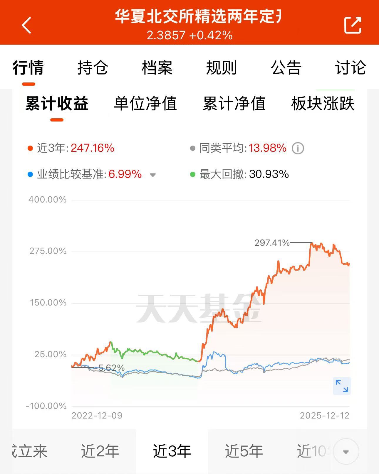 这只是北交所龙头聚集地,还是近3年的收益冠军,跑赢指数200%+呢,超额收益这么强,开放到这周五,没布局的快抓紧了$华夏北交所精选两年定开混合发起式$
