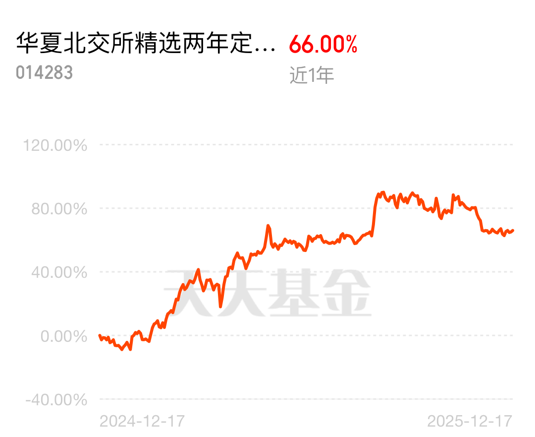 今天买了点$华夏北交所精选两年定开混合发起式$ 。主要是什么,这是过去三年的收益冠军基,250%的收益。说白了你去买别的,收益没这个好,要买基金当然要买最能挣的啊。这玩意也就开放这几天,过了就又没机会了。