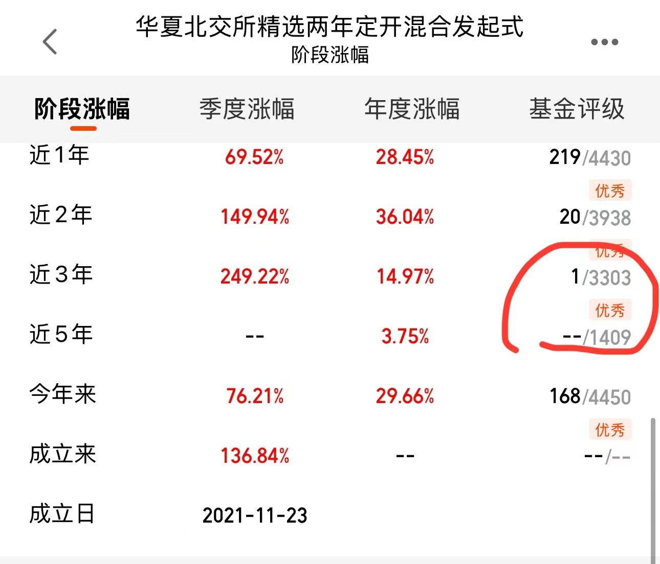 开放的最后时机,3点前要牢牢把握住,$华夏北交所精选两年定开混合发起式$ 近一年收益69%+,跑赢北证50指数42%+,近三年收益249%+,同类排名第1,跑赢北证50指数200%+,布局的也都是北交所高成长赛道,虽然近期市场震荡受影响,但长期超额收益显著啊