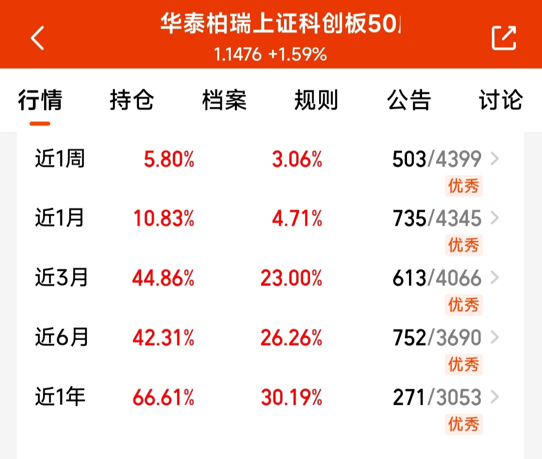 看到半导体龙头创新高,板块景气度持续提升。$华泰柏瑞上证科创板50成份ETF联接C$ 近3个月涨44.86%,近一年66.61%,科技类基金这收益真不错。