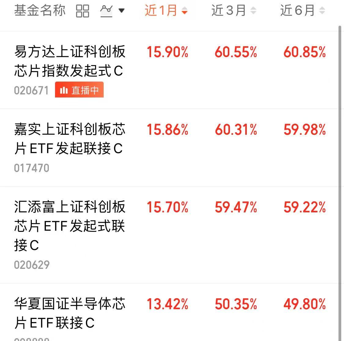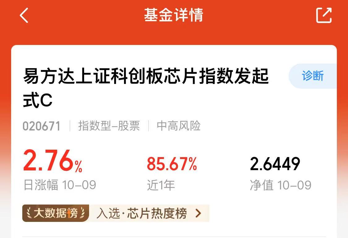 看了下芯片指数里面,最近业绩锐度最好的还得是$易方达上证科创板芯片指数发起式C(OTCFUND|020671)$