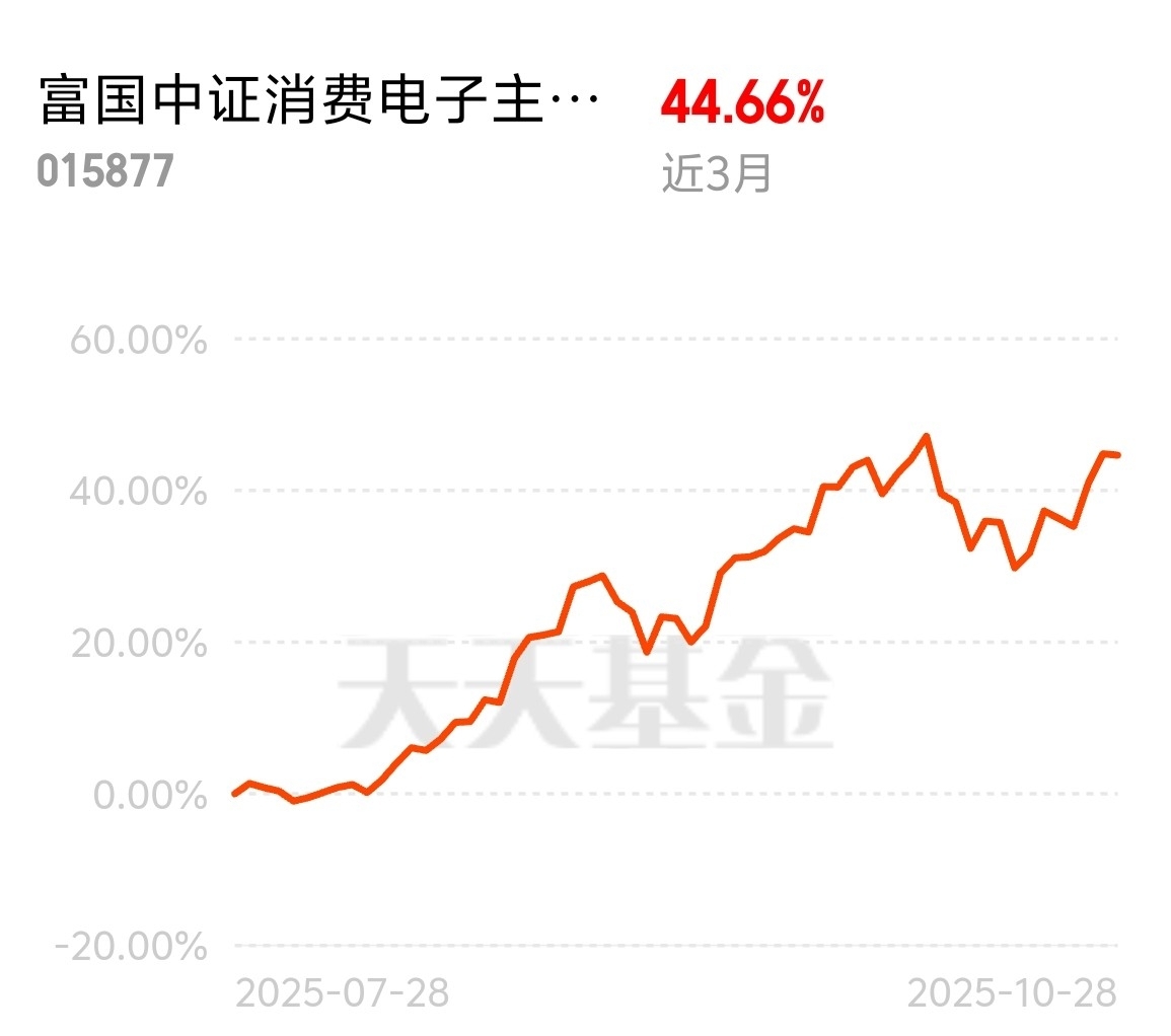 最近半导体涨得猛,我德邦半导体产业C吃肉的同时,也没忘搭个顺风车富国中证消费电子主题ETF联接C,持仓全是消费电子龙头,像果链、光学、芯片这些热门方向。它跟指数几乎分毫不差(年化跟踪误差仅0.36%),老将掌舵10年,近2年涨了93%,这季度成分股利润还暴增40%!科技行情稳了,我两手都抓,心里更踏实。