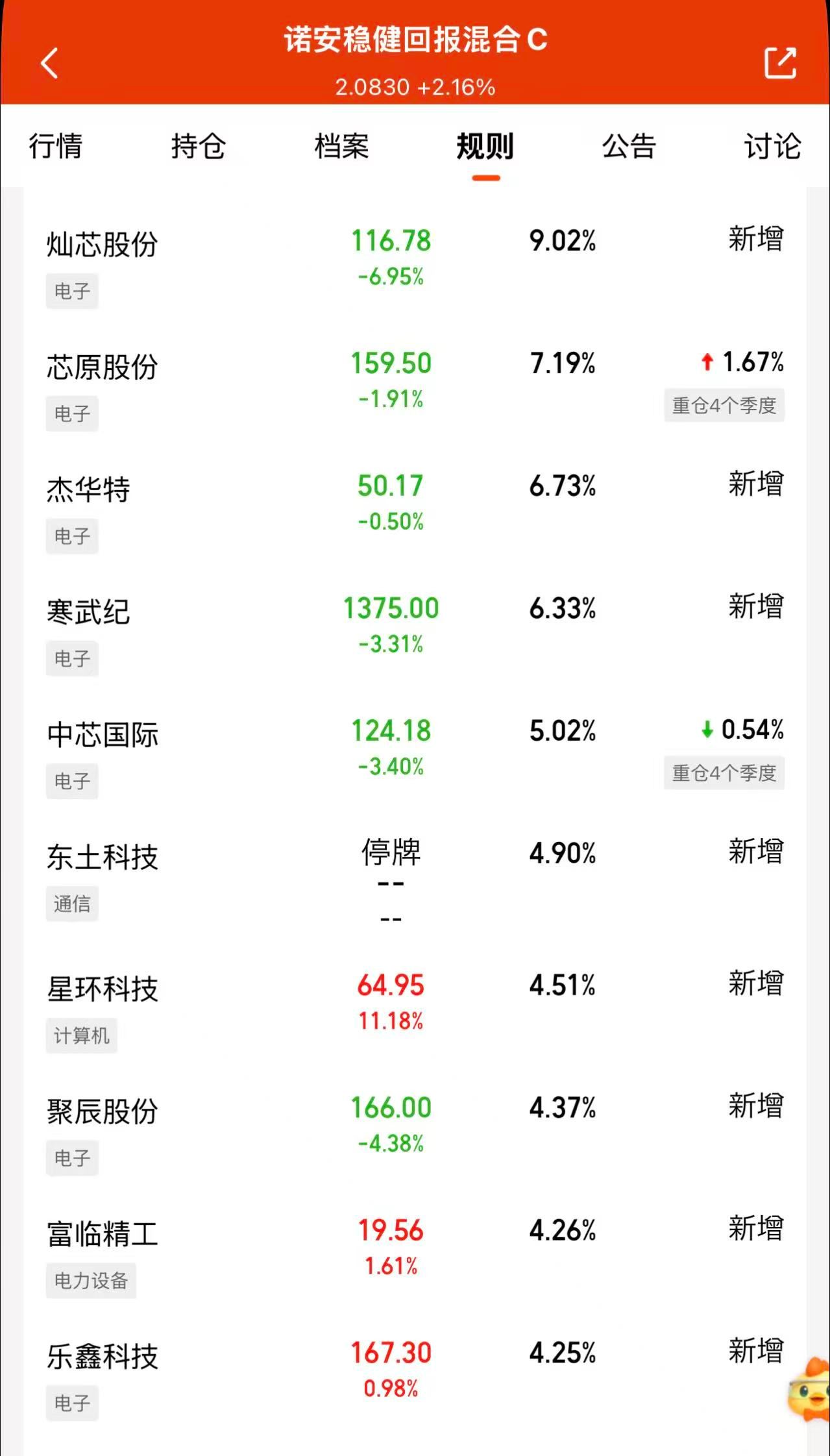 昨晚熬夜看美股科技股跌惨了,心想诺安稳健回报混合C(002052)的重仓科技股肯定遭殃,结果净值涨2.16%!仔细一看,星环科技涨11.18%,富临精工也涨。原来这基的科技股不跟美股节奏,自主行情这么猛,2.16%的涨幅太意外。#AI应用类股票大涨:短剧概念逆势走强#