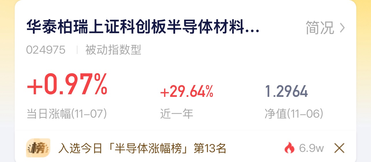 连涨三天了!半导体设备板块最近政策暖风不断,我也跟了点风。选华泰柏瑞主要是相中C