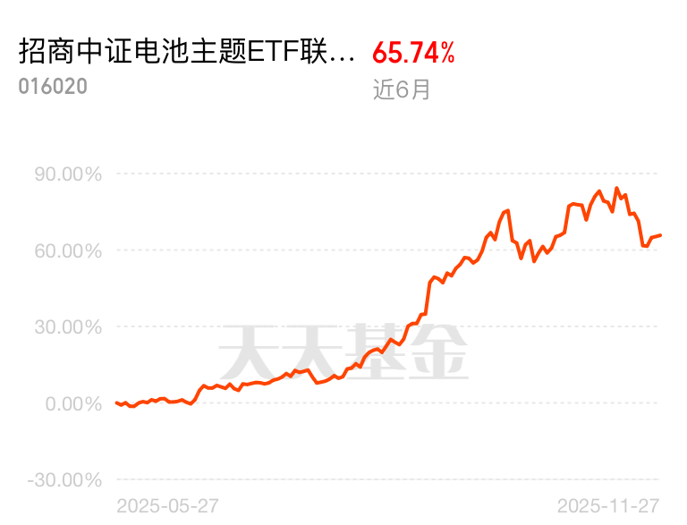 电池材料技术持续突破,成本下降效率提升,今天板块V字拉升太给力。招商中证电池主题ETF联接C近6个月涨65.74%,紧跟全产业链的高增长,政策红利+技术迭代,是普通人参与电池赛道的好工具。