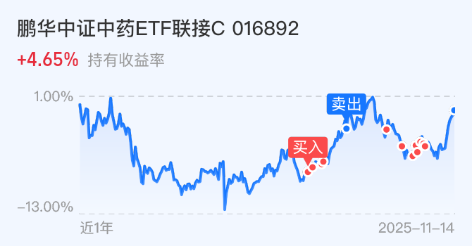 $鹏华中证中药ETF联接C$今天躺平,已经止盈了!