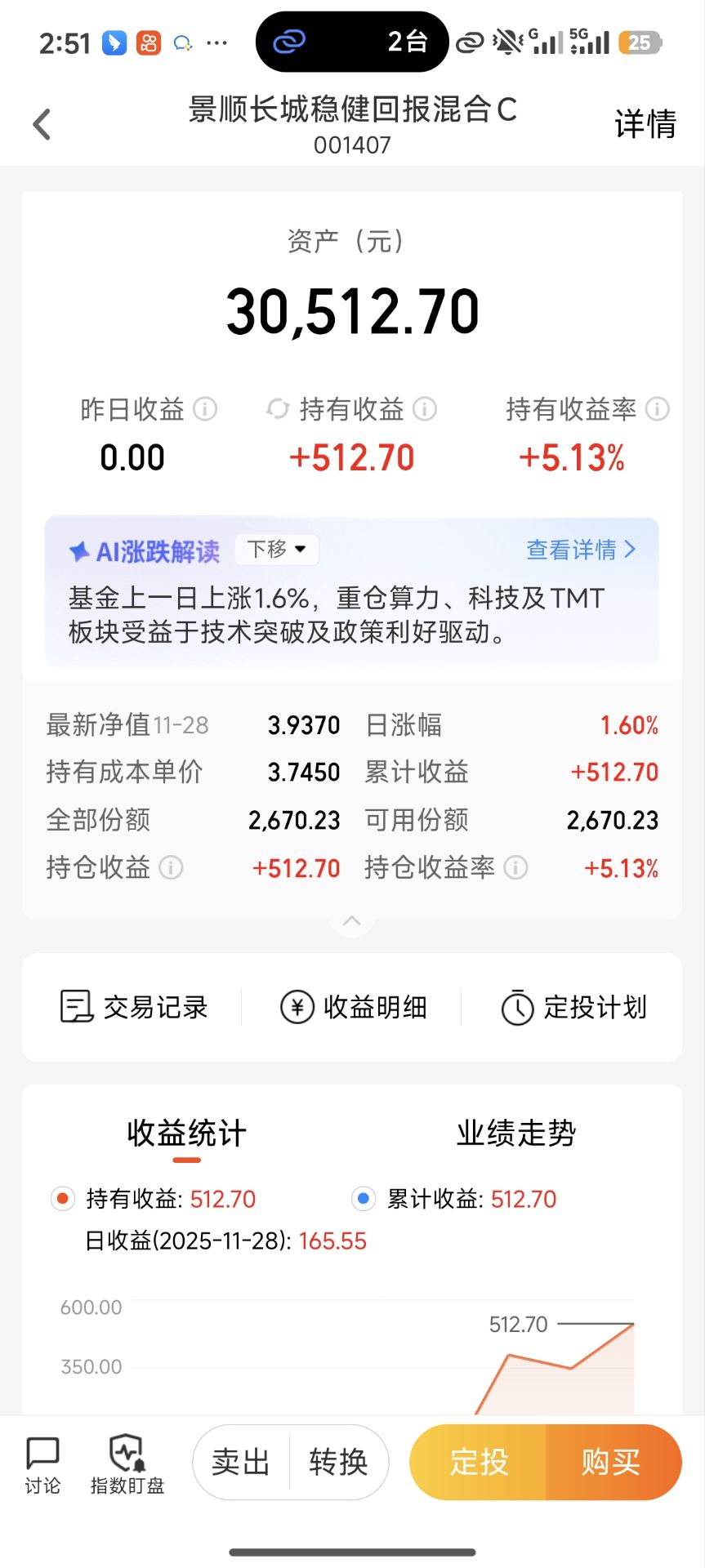 今天加仓 景顺长城稳健回报混合 C$景顺长城稳健回报混合C(OTCFUND|001407)$ 20000 元。上次加仓这只后很快就开始赚钱,今天通信设备板块继续反弹,刚好乘势再加码 —— 这波节奏踩得很顺。