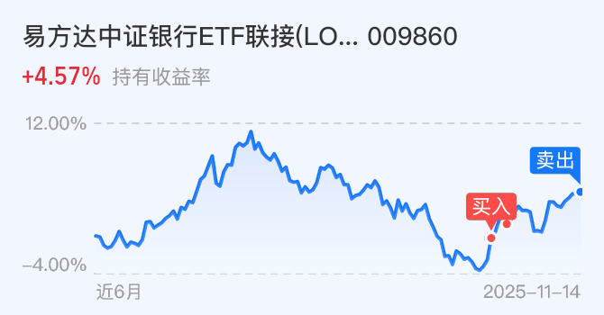 $易方达中证银行ETF联接(LOF)C$今天躺平,上周五已经止盈了!