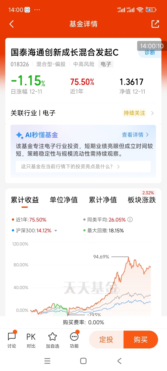 今天科技行情真不错,目前关注存储和半导体上游设备!近一年75.50%,欧力给,冲冲冲!