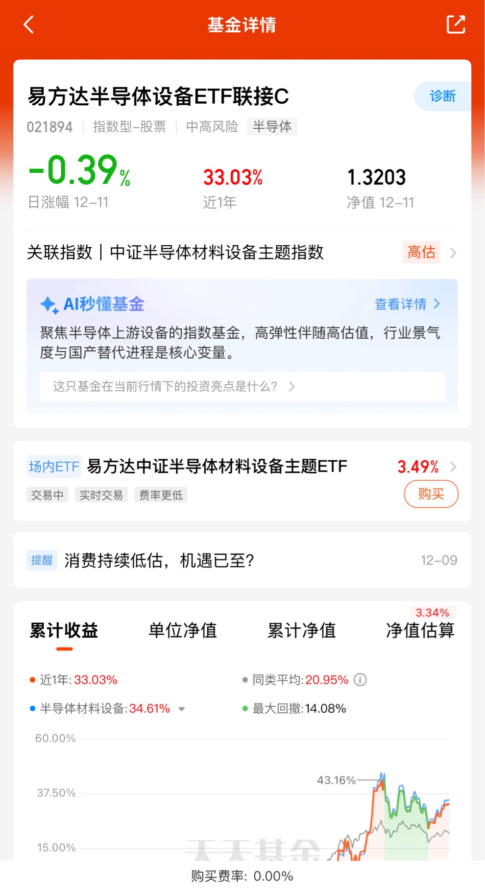 今日半导体设备板块表现强势,高开高走,盘中领涨。易方达半导体设备ETF联接C,目前大涨3.34%。
