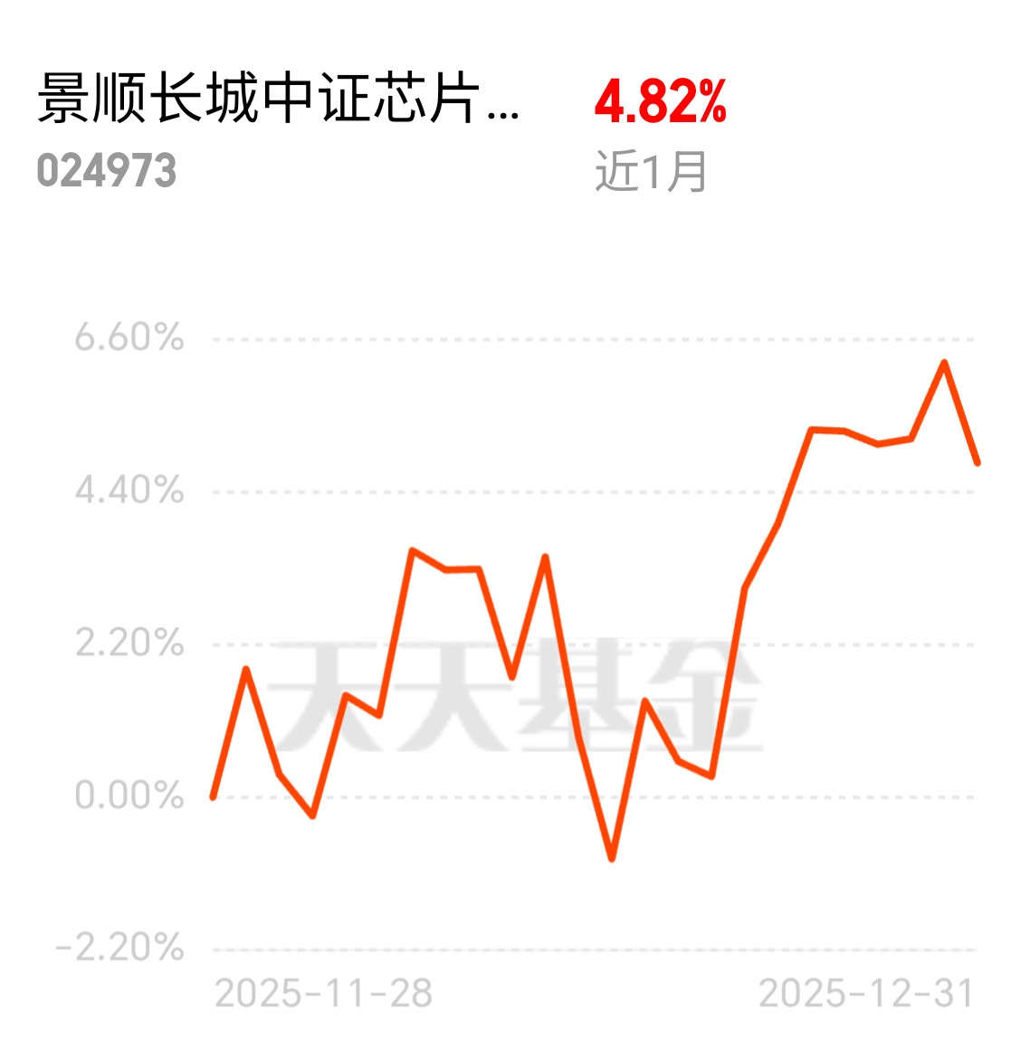 AI 融入半导体全流程,产业效率提升!久违的大阳线超提气,芯片板块今天领涨,趋势彻底转好。估值涨了 4 个多点,景顺长城中证芯片产业 ETF 联接 C 近 1 月 4.82%,C 类灵活操作,做波段正合适。$景顺长城中证芯片产业ETF联接C$