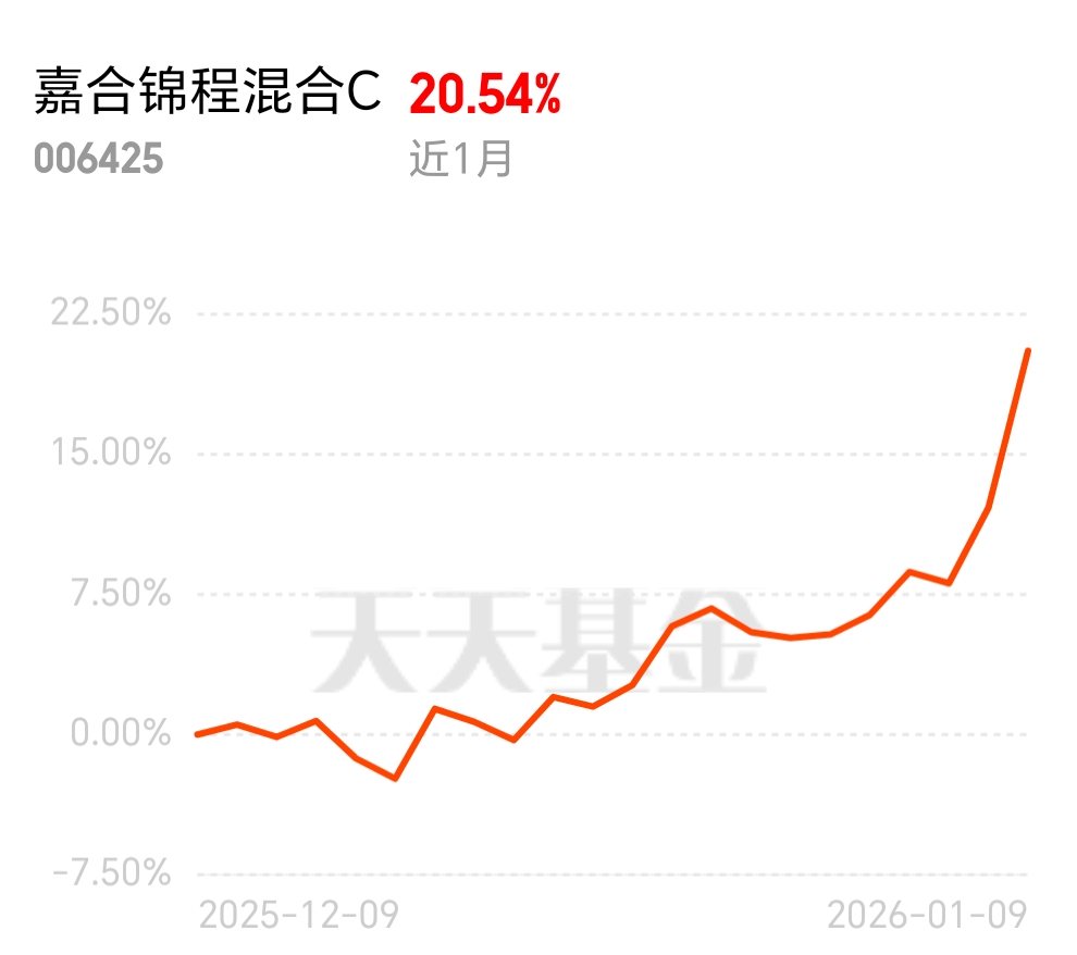 国际巨头加速太空布局,国内企业也不甘落后,商业航天竞争激烈,$嘉合锦程混合C$ 紧跟行业动态,上周五涨 8 个点,今天估计 8 个点起步,近 1 月 20.54%,在竞争中赚收益。