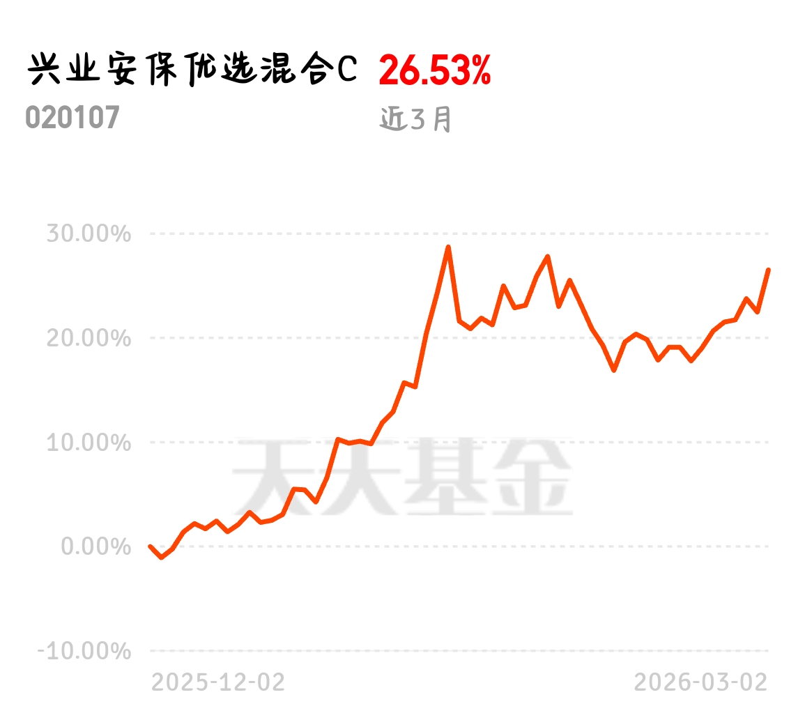 军工今天直接登顶,全场第一没话说!军贸订单创历史新高,景气度拉满。想抓弹性就得选规模小的,大基金没那速度。兴业安保优选 C 聚焦军贸军工,规模小弹性足,当下点位刚刚好,布局!$兴业安保优选混合C$