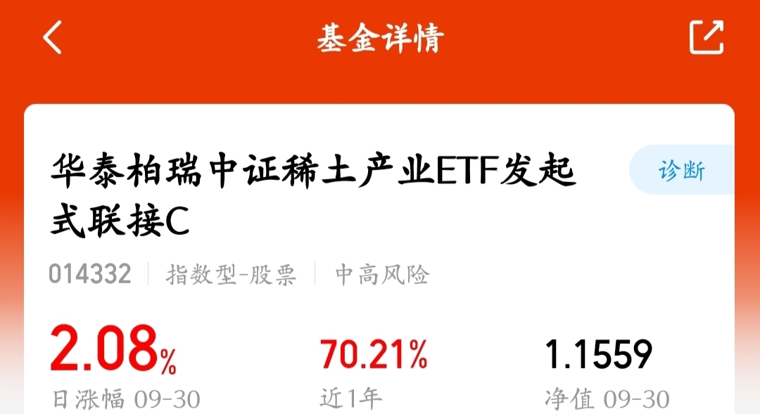 今天稀土行情真不错,政策利好推动。$华泰柏瑞中证稀土产业ETF发起式联接C$今天