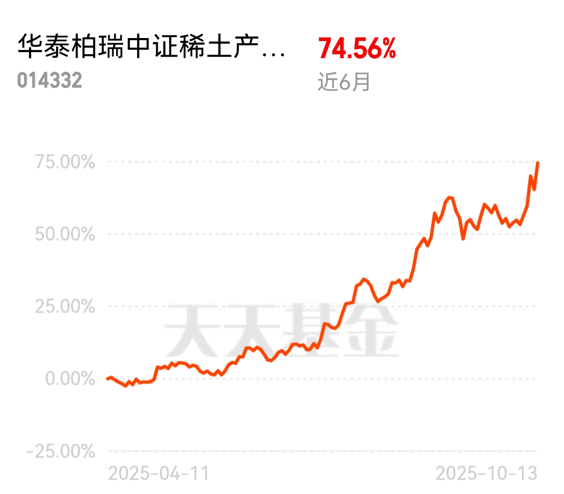 我的稀土基金昨天涨了5.56%,今年来表现一直很强。美国83.7%的稀土从中国进口,这种依赖度短期内很难改变。 $华泰柏瑞中证稀土产业ETF发起式联接C$