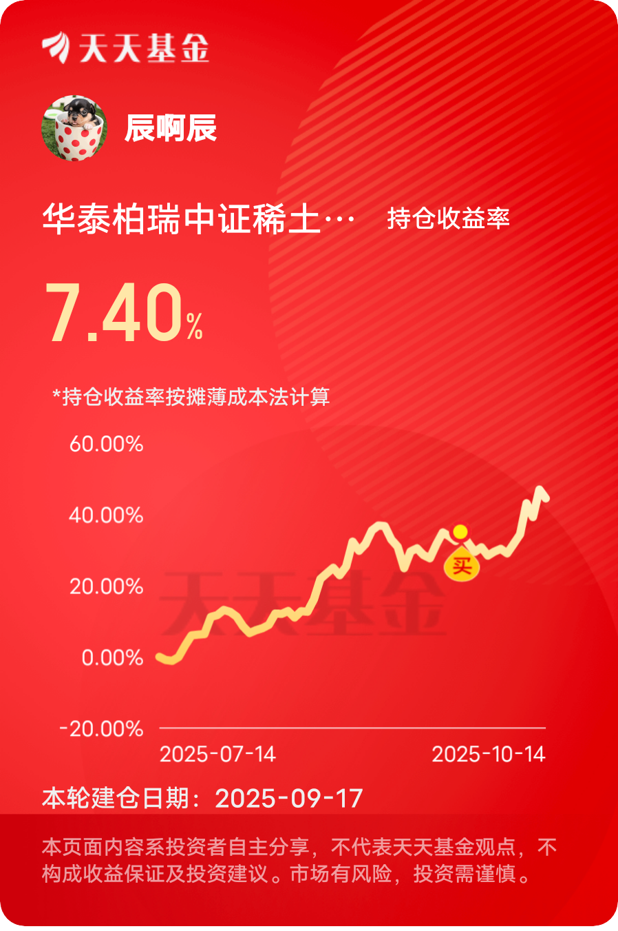 #晒收益# 稀土板块这表现,$华泰柏瑞中证稀土产业ETF发起式联接C$ 近一年88.12%,近三个月44.55%。在反制逻辑推动下,行情大概率还会延续。