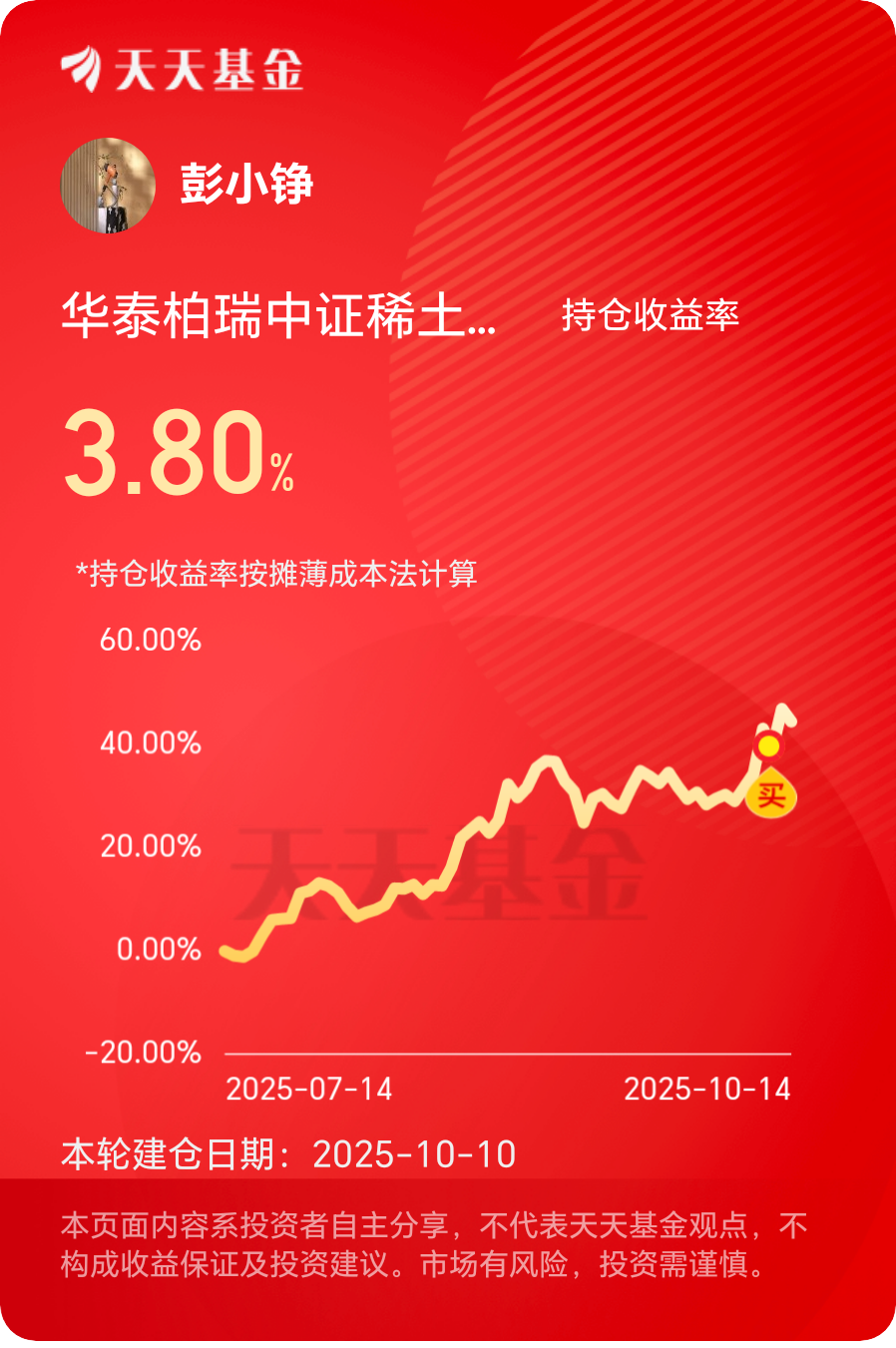 #晒收益# 耐心点没问题,华泰中证稀土近三个月44.55%的收益,近一年88.12%。关税反制让稀土板块前景明朗,回调即机会。$华泰柏瑞中证稀土产业ETF发起式联接C$ #3900点得而复失!A股风格要改了?# #OpenAI联手博通!AI产业链怎么投?# #稀土价格暴涨37%!稀土板块狂飙#