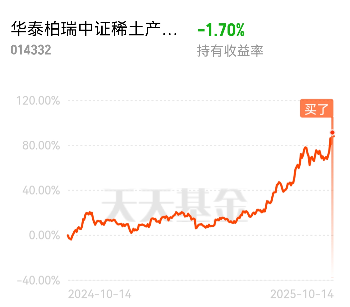 18. 还可以哈,华泰中证稀土近一年88.12%,近三个月44.55%!稀土在反制中地位独特,调整反而是上车良机。 $华泰柏瑞中证稀土产业ETF发起式联接C$ 感觉还在低估区域开始定投。