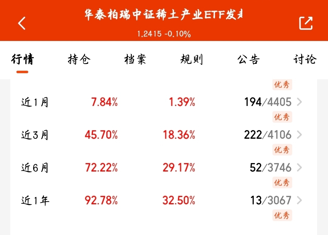 华泰中证稀土近半年70.84%的收益惊艳到我了!关税逻辑下行情未完,调整正是布局时。