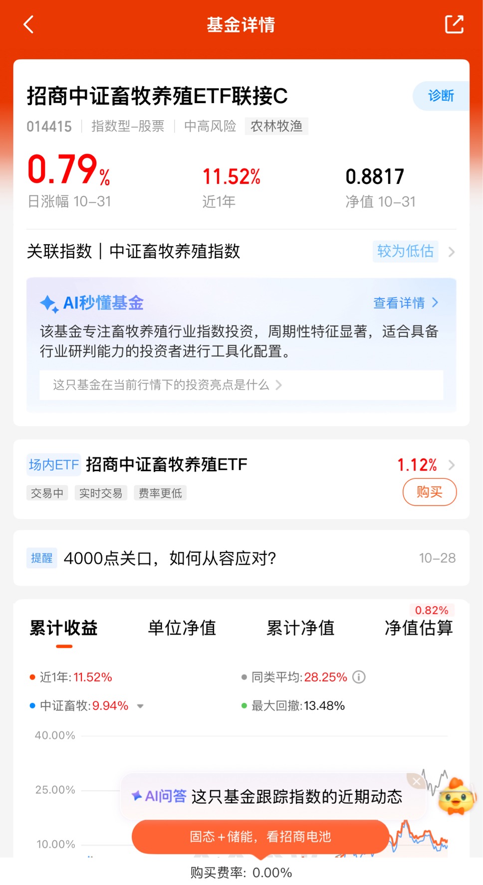 $招商中证畜牧养殖ETF联接C$ 紧密跟踪中证畜牧养殖指数,覆盖生猪养殖全链,超60%权重聚焦养猪核心企业,近40%布局疫苗、饲料等上下游及禽类水产,全面把握产业周期。