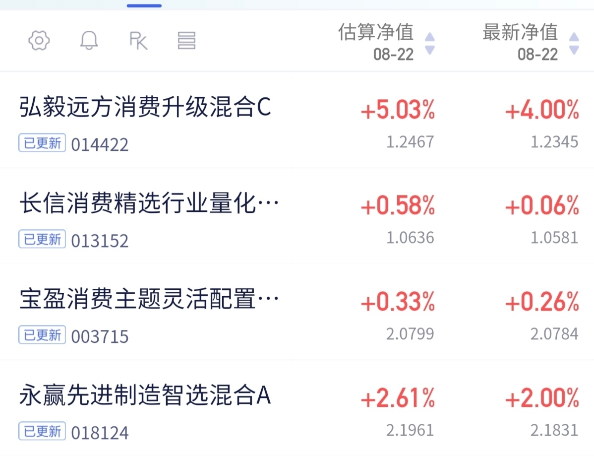 22日股市,科创50指数放量大幅上涨超8%,个股涨多跌少。市场做多热情高涨。弘毅远方消费升级混合C(014422)紧密关注AI智能体在消费领域的应用,今天大涨5.03%
