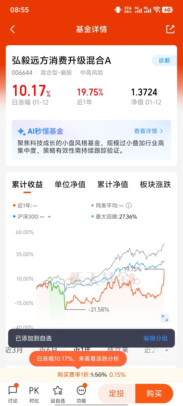 在这样的大背景下,我们来审视弘毅远方消费升级混合C这只基金。