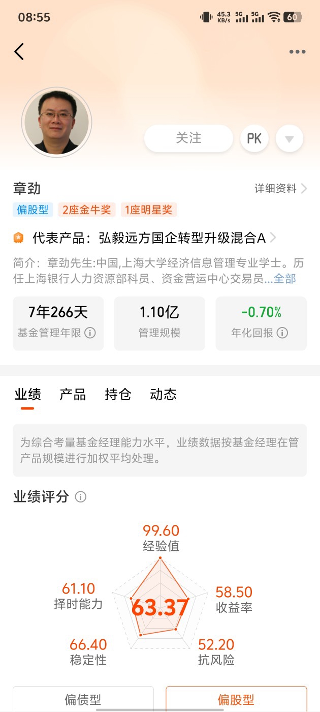 基金经理章劲综合业绩:在全部3726位基金经理中排名第3191位