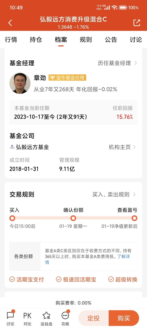 $弘毅远方消费升级混合C$ $弘毅远方消费升级混合A$ @弘毅远方基金 #晒实盘#