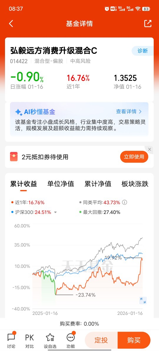 进入2026年以来,AI行业的爆发,预示着今年是AI元年。开年就如此火爆,今年的行情差不了。25年末,华为的AI憨憨上市了,许多年轻人都抢着购买,上市的前几天,都不能直接购买,只能预订,给孩子买了一个,孩子很喜欢。它可以增加我们的情绪陪伴,大人小孩都可以用,很不错的陪伴搭子,多模态互动超好玩。没事陪我们聊聊天,解解闷,一个不错的玩具搭子。$弘毅远方消费升级混合A$ $弘毅远方消费升级混合C$ @弘毅远方基金