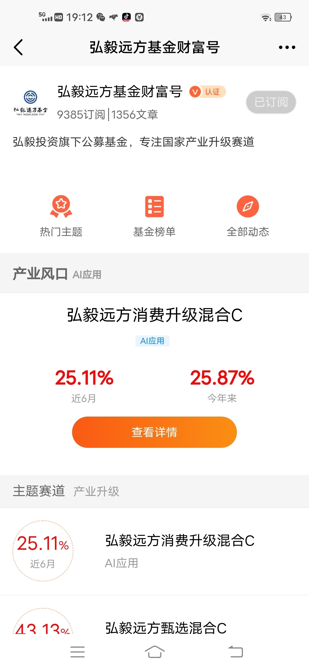 #AI应用板块再度逆势领涨!# #AI应用集体走强!领涨市场# #AI智能体有望进入爆发期# $弘毅远方消费升级混合A$$弘毅远方消费升级混合C$ 是一键布局AI应用、AI智能体投资机遇的优选!近一个月大涨31.31%,大幅跑赢同类基金8.67%的平均涨幅,在5069只同类基金中排名59,表现非常优异!基民小虎一直定投持有$弘毅远方消费升级混合C$ ,收益和体验都非常好!