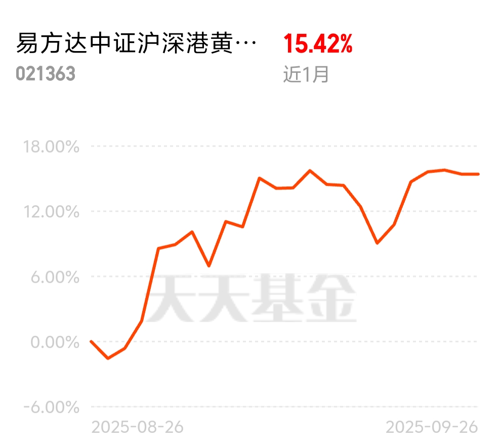 地缘局势的影响还在,资金持续流入黄金产业,板块行情火得很。易方达中证沪深港黄金产业股票指数C近1个月15.42%,加仓坐等赚钱!$易方达中证沪深港黄金产业股票指数发起式C$