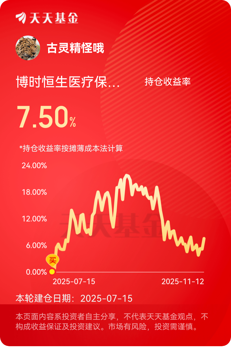 #大消费板块逆市拉升!行情能否持续?# 跟着大消费回暖,$博时恒生医疗保健ETF发起式联接(QDII)C$ 可以蹲一波!最近大消费板块逆市拉升的热度都看到了吧?其实医疗也算大消费里的“刚需扛把子”,尤其是港股医疗,博时恒生医疗就是直接瞄准这个赛道的。港股医疗板块之前因为各种因素调整挺久,现在随着消费复苏+政策边际宽松,估值已经到了比较有吸引力的区间。博时这只基金是跟踪恒生医疗保健指数,覆盖了创新药、医疗器械、医疗服务等细分领域,像大家熟悉的药明生物、爱尔眼科都在持仓里,属于“一基打包港股医疗核心资产”。而且医疗是长坡厚雪赛道,不管市场怎么波动,健康需求都是刚性的。现在大消费板块已经起势,医疗作为其中的优质分支,后续行情值得期待。#晒收益#