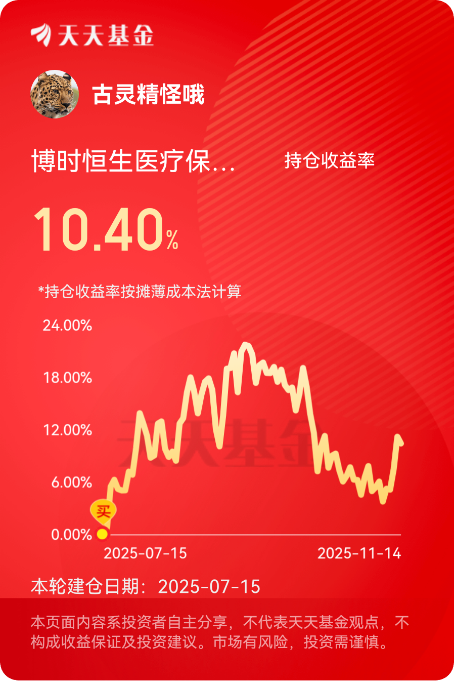 #创新药三连涨!医药商业狂飙# 最近医药圈的“狂欢模式”直接拉满,创新药三连涨、医药商业集体狂飙,而$博时恒生医疗保健ETF发起式联接(QDII)C$ 就是我蹲到的“医药黄金坑”!这只基金主攻港股医疗赛道,持仓里全是药明生物、信达生物这些创新药龙头,刚好踩中近期医药板块的反弹主线。尤其创新药政策松绑+企业管线落地,业绩预期直接拉满,连带港股医疗指数跟着回暖。更绝的是,港股医疗股估值还在低位,对比A股医药赛道相当于“半价买核心资产”。博时在港股投资领域是老牌选手,能帮咱们精准拿捏医疗股的波动节奏,不用自己费劲盯盘。现在医药板块“政策暖风+业绩复苏”双buff叠满,不管是短期吃反弹红利,还是长期布局医疗刚需赛道,这只基金都适配度拉满~别等行情起飞再拍大腿,这波医药红利我先靠它接住了!#晒收益#