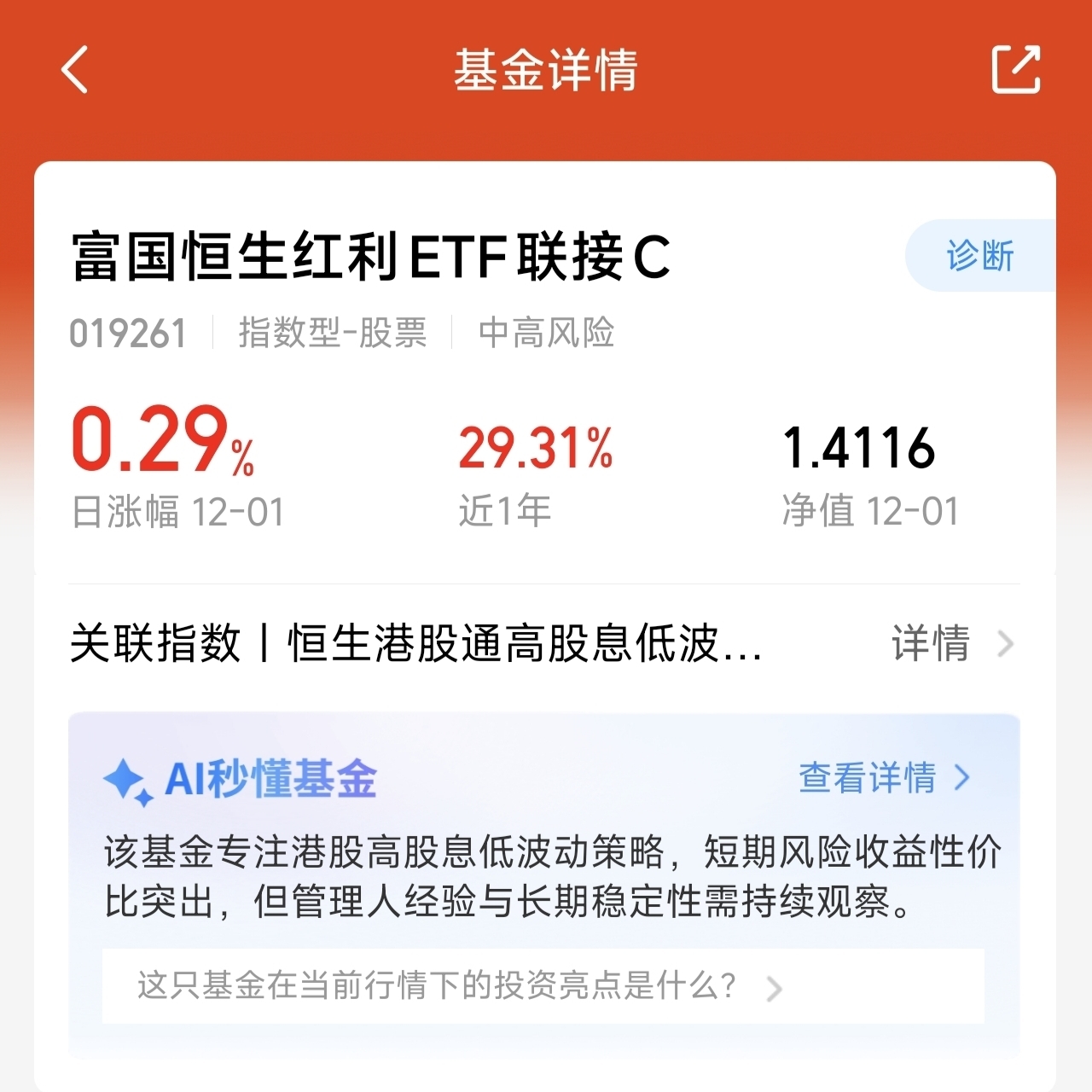 当前博时恒生医疗保健一直在跌,但同帐户里的富国恒生红利C联接C近1个月涨了3%,