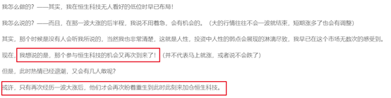 其中说过,“或许,只有再次经历一波大涨后,他们才会再次盼着重生到此时此刻来加仓恒生科技。”(恒生科技这一波大涨后,不少人应该会有这个心态吧,没错,这都在老王的预料中~)