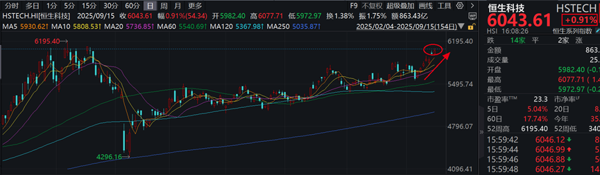 在美联储降息预期强化带来的港股机遇和科技板块自身的机遇,以及南向资金加速流入的叠加下,恒生科技值得重点关注。